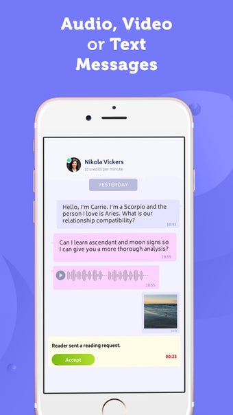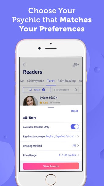 Możesz nawiązać połączenie z jednym z ponad 500 żyjących wróżbitów i wybrać różne rodzaje wróżb, takie jak tarot, astrologia, psychika, jasnowidzenie, wróżby z dłoni, horoskopy wydarzeń. Możesz nawet stworzyć swoją przepowiednię za pomocą naszej łatwej konfiguracji. Wybierz wróżby, które chcesz otrzymać i umieść pytanie w polu wiadomości.